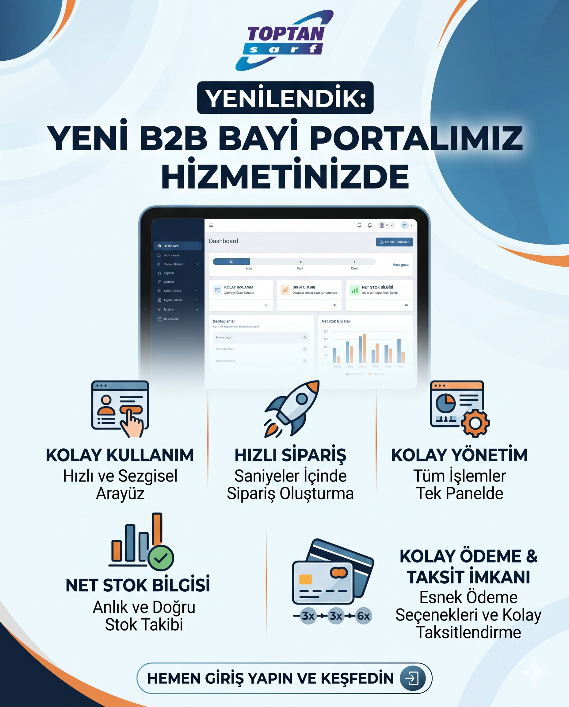 Stoklarımıza yeni eklenen ürünleri keşfedin, bayilere özel fiyatlarla hemen sipariş verin.